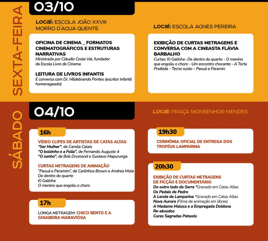 A programação do primeiro Festival de Cinema de Catas Altas contou com produções nacionais e históricas, com a curadoria de Flávia Barbalho.